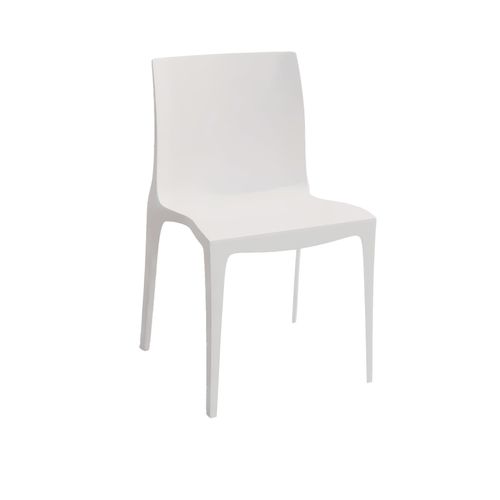 Sinuous propylene chair, elegant and suitable for any type of furniture. The backrest is slightly curved and is particularly comfortable, following the shape of the back. Stackable.